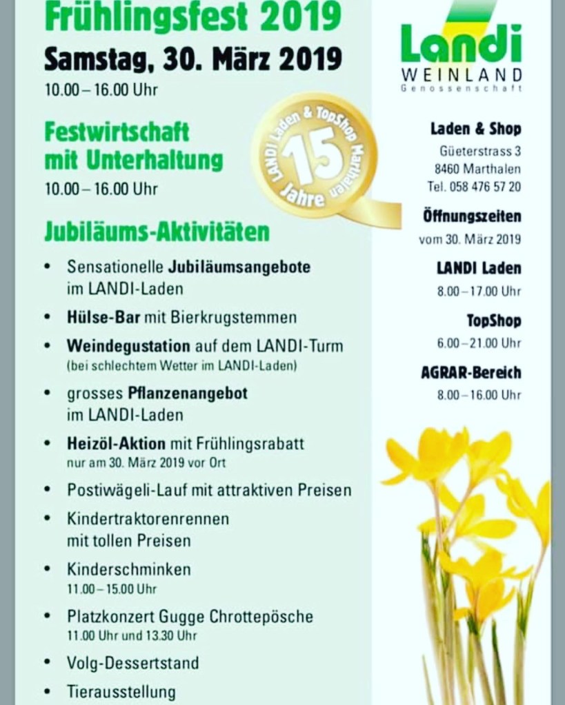 Frühlingsfest der Landi Weinland in Marthalen Gratis Kinderschminken am 30. März 2019