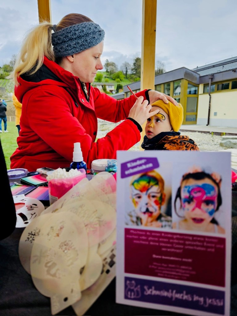 Kinderschminken beim Ossinger Bauernmarkt am Samstag, den 24. September 2022. Ausserdem gibt es noch einen Kinderflohmarkt, sowie ganz viele andere Stände. Kommt vorbei … 🙂
