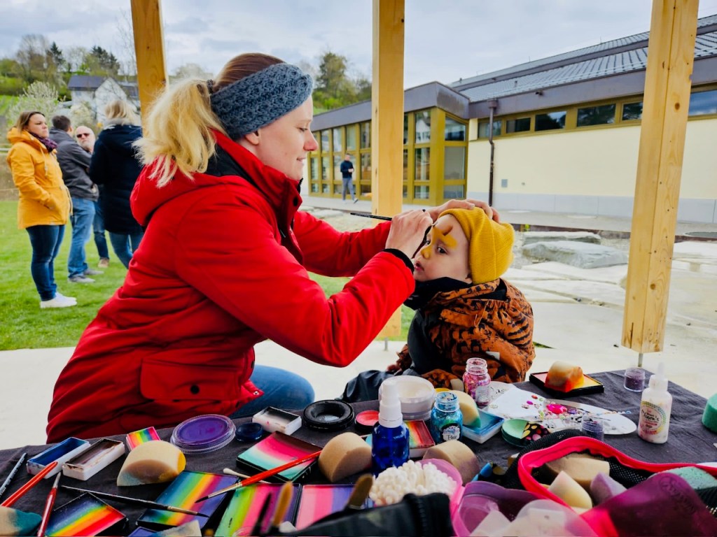Kinderschminken beim Tag der offenen Tür der Kita Kinderwerkstatt am Samstag, den 25. März 2023.